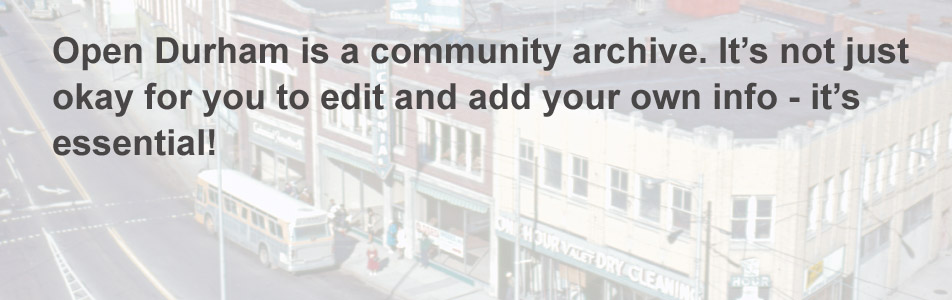 Durham's history is your history! This database expands and improves when you add all of your pictures, commentary, corrections, information and ideas! Click on the "Create and Edit" link above to learn more.