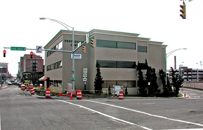 The service station was acquired by the Redevelopment Commission as part of Urban Renewal and sold to Relaw, Inc. in 1972. The service station was torn down, and the "Professional Center" was erected in its place, completed in 1974.