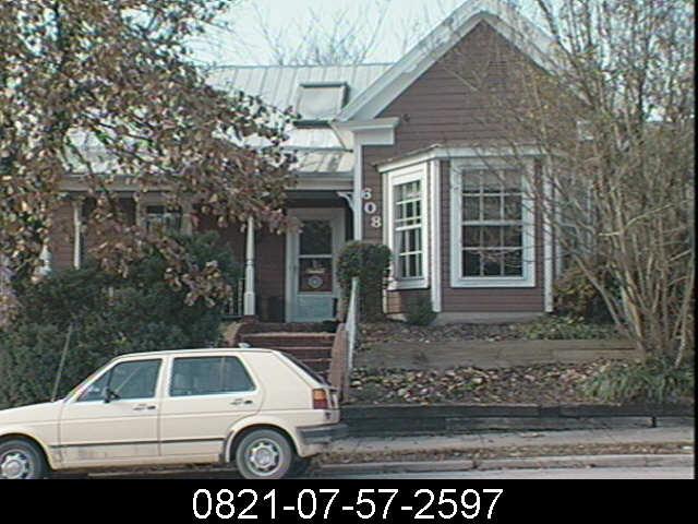 This one-story T-shaped frame house dating from the turn-of-the-century recently was restored and embellished with the addition of a three-sided bay to the front wing. The house retains it original pressed tin roof shingles and turned porch posts with spandrels.