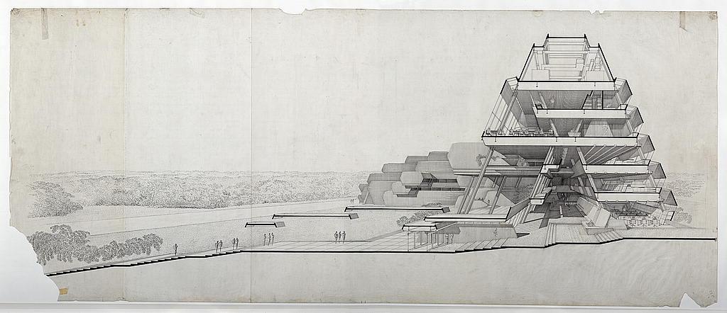 Section perspective looking north (The Paul Rudolph Archive, Library of Congress)