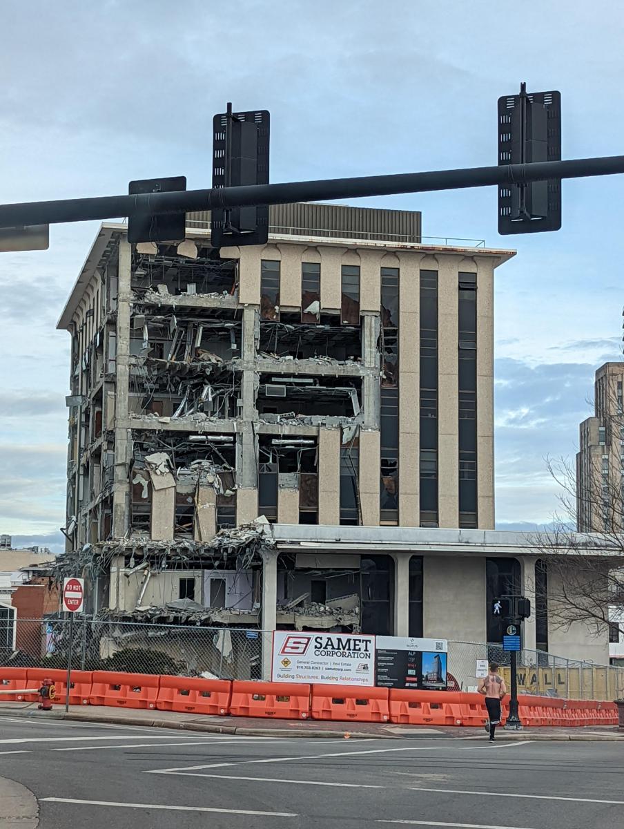The building being demolished in February of 2022, to be replaced by a condo tower named "Novus."