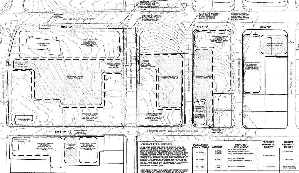 The Rescue Mission's support for the widening of Alston Avenue seems a bit less befuddling now. Pedestrian flow from east to west through these blocks clearly is not a priority in these plans. I have to admit, I was disappointed by the Rescue Mission's lack of support as members of the immediate neighborhood (and beyond) tried to fend off the NCDOT widening of Alston, and felt a bit of "you reap what you sow" when an NCDOT environmental justice finding meant that the roadway would shift to the east, avoiding the demolition of Los Primos - the only grocery store in the area - by taking some of the Rescue Mission's land intended for their project.